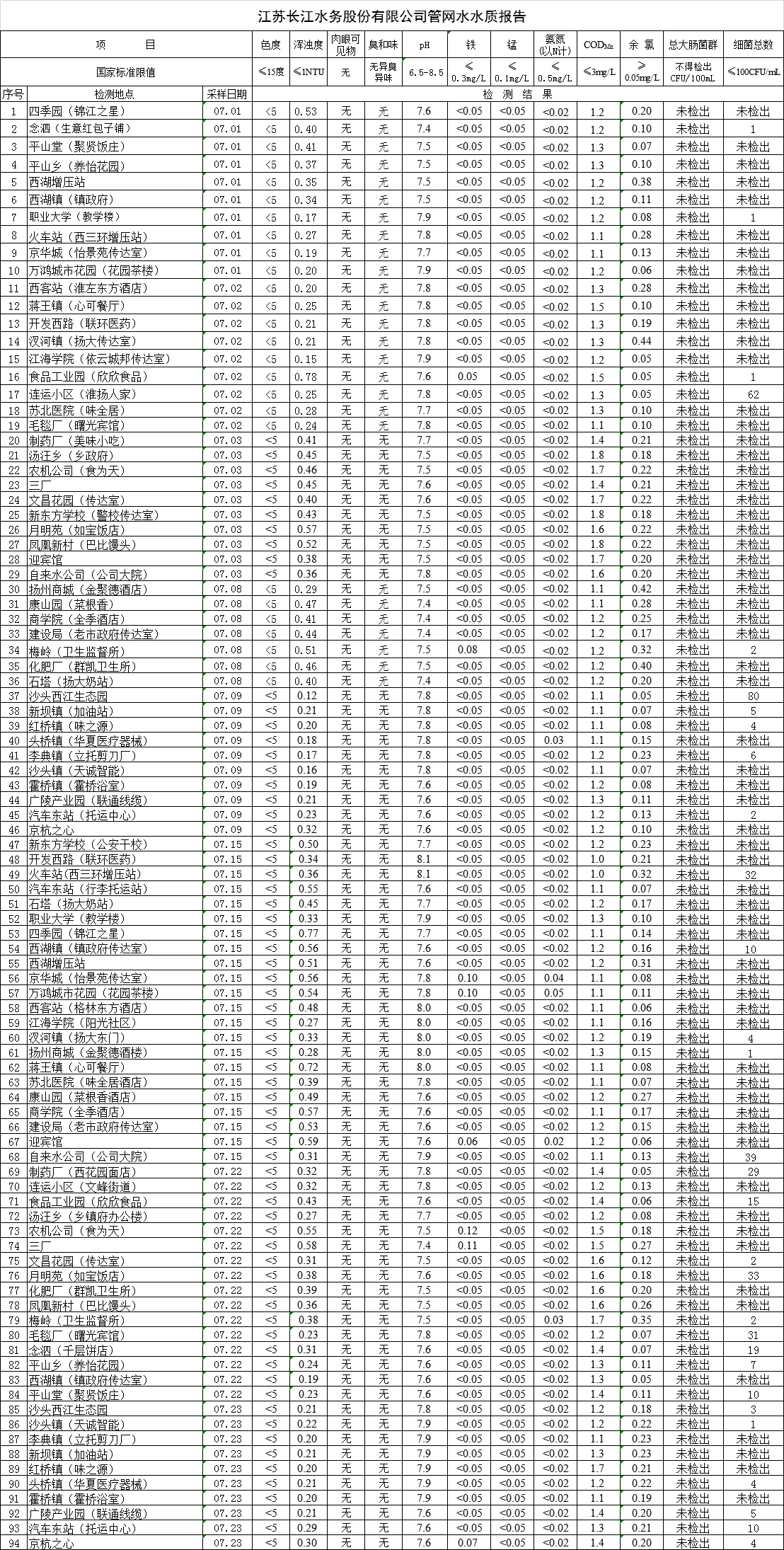 江蘇長江水務股份有限公司管網水水質報告(2019年7月)