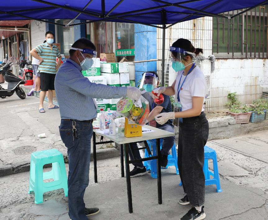 8月2日,趙仲琳看到集團(tuán)發(fā)布的防疫志愿者招募令后,她都沒跟丈夫王杰商量,就毅然報名參加了防疫志愿者隊伍。8月5日,趙仲琳所在的城控集團(tuán)第一批志愿服務(wù)隊集結(jié)完畢,作為先鋒部隊進(jìn)入疫情高風(fēng)險地區(qū)——武塘社區(qū)開展志愿服務(wù),協(xié)助社區(qū)進(jìn)行疫情防控宣傳,勸導(dǎo)居民配合居家隔離,幫助居民運送生活物資。