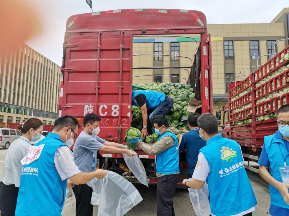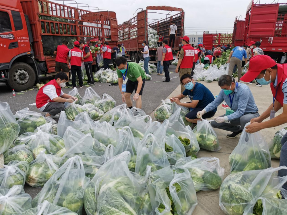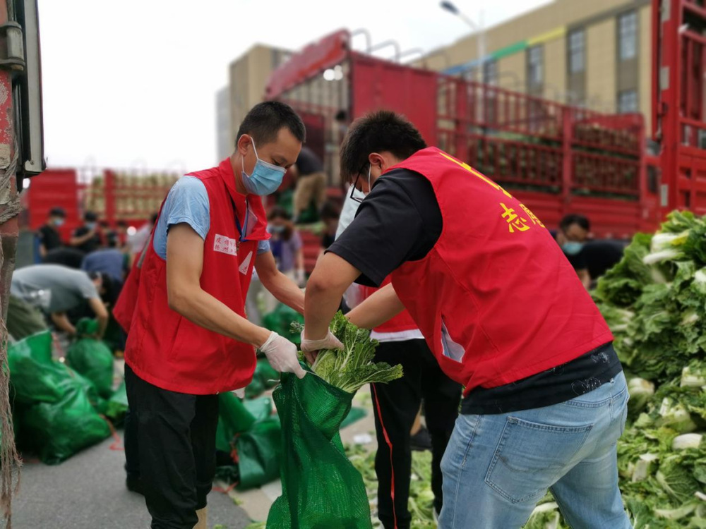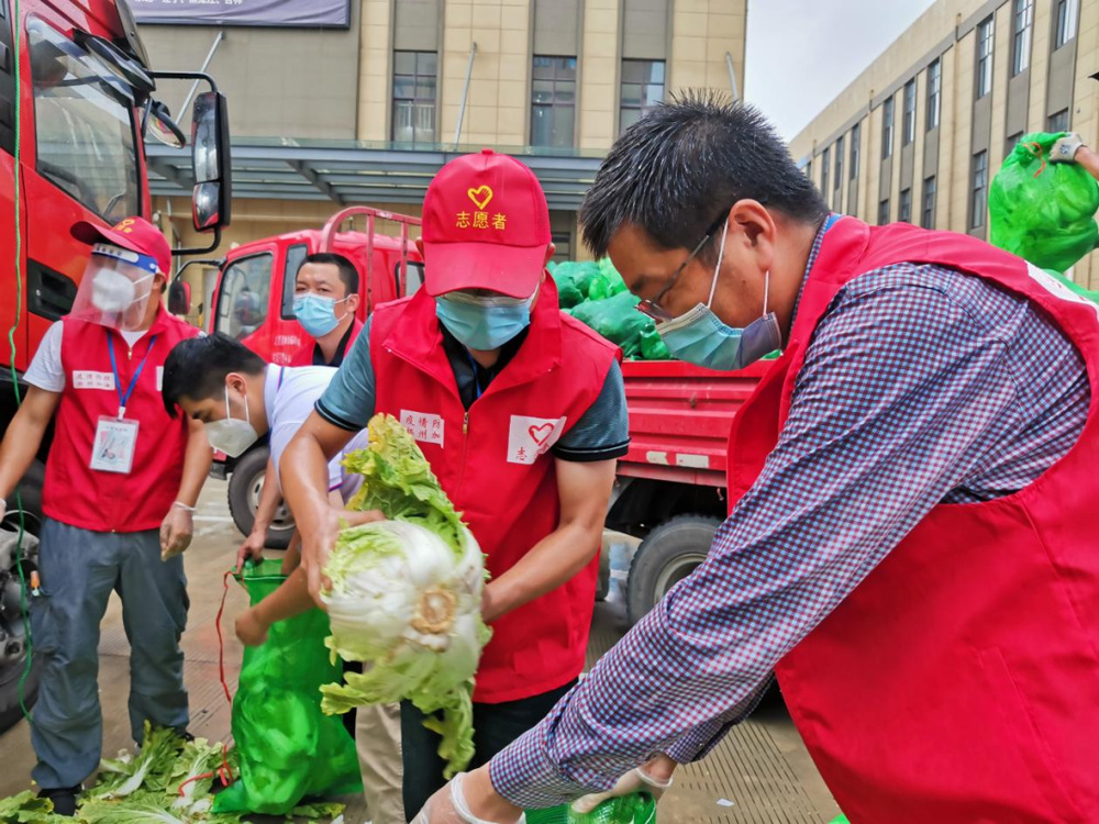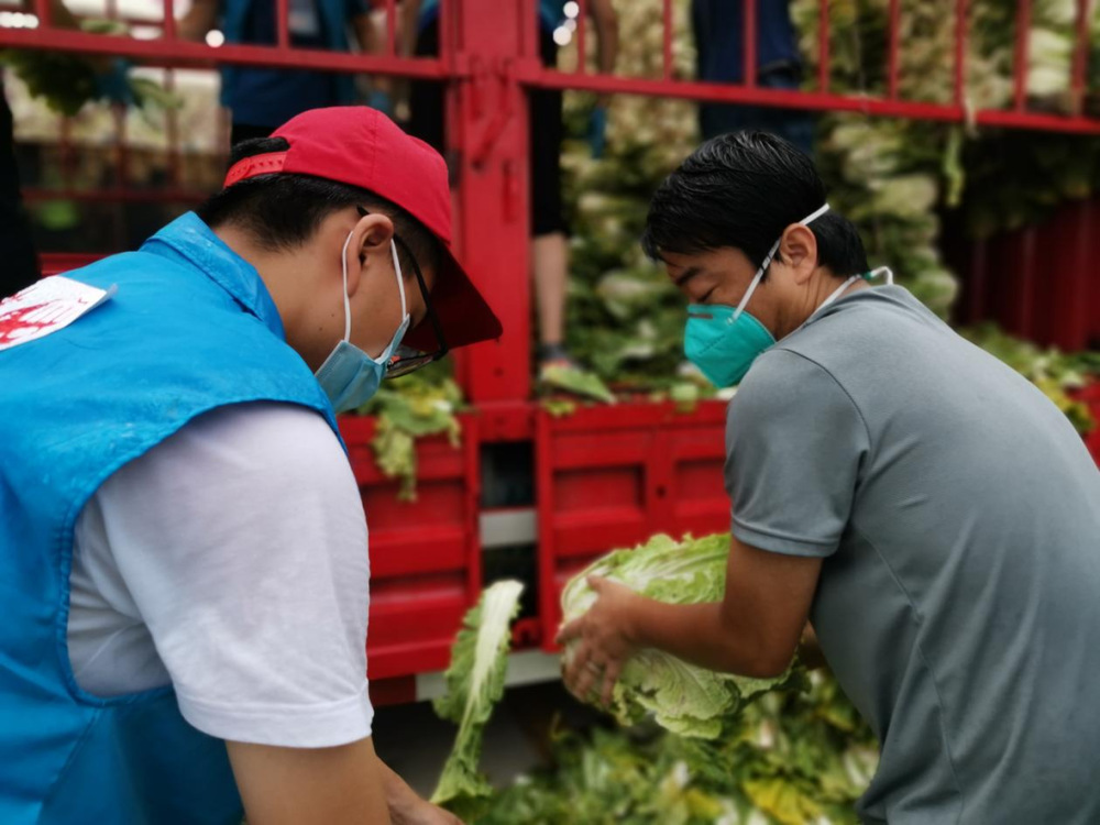 由于蔬菜數(shù)量龐大,為保障居民能夠及時(shí)拿到“愛心菜”,13:30,城控集團(tuán)又從各志愿服務(wù)小組緊急抽調(diào)50名志愿者奔赴萬(wàn)噸冷鏈進(jìn)行現(xiàn)場(chǎng)支援。