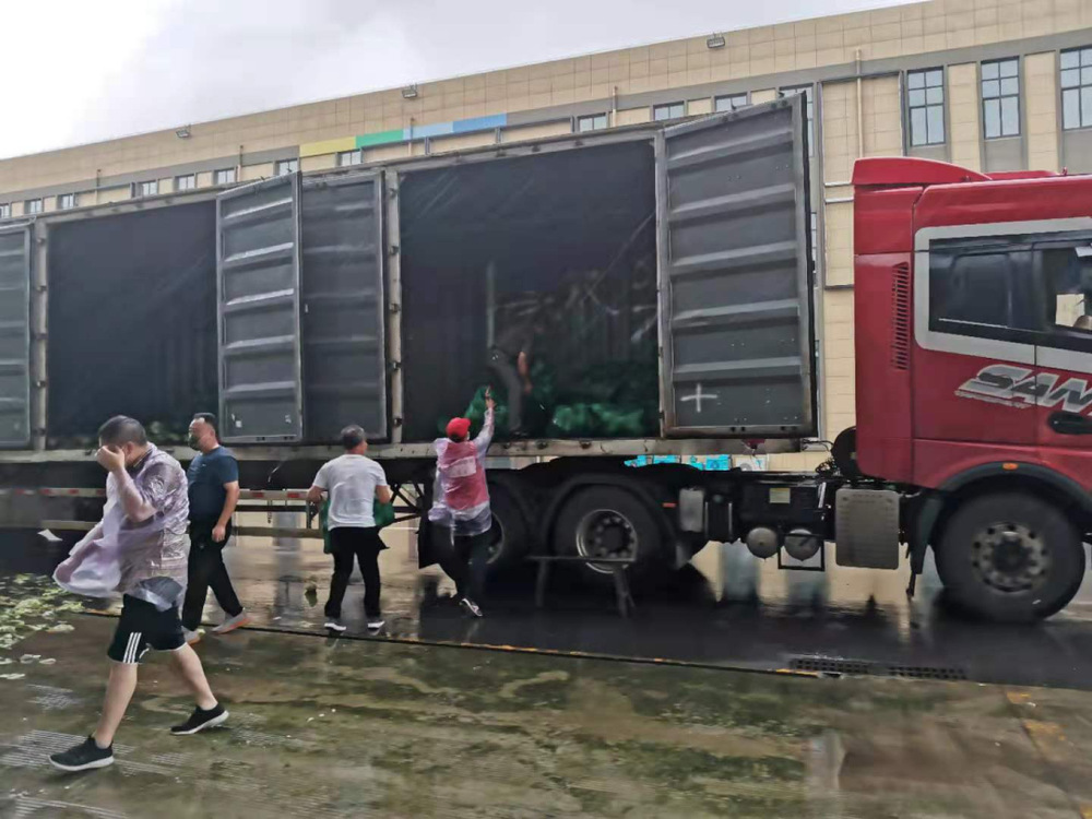14:30,天空開始飄起雨點(diǎn),大家依舊堅(jiān)守在各自的崗位上,很快雨點(diǎn)就打濕了衣服和頭發(fā),可現(xiàn)場(chǎng)沒有一個(gè)人退下躲雨。“這車卸得差不多了,我們?nèi)ツ沁厧兔Α保摆踅瓍^(qū)轉(zhuǎn)運(yùn)蔬菜的車來(lái)了,需要10個(gè)人裝車”,“我去”“我也去”,現(xiàn)場(chǎng)只有時(shí)不時(shí)這樣的聲音傳來(lái)。
