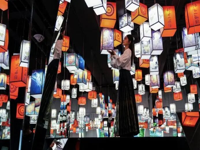 在東門城樓18個展廳構建《創(chuàng)世·山海經》數字孿生平臺,運用8K沉浸式動畫、VR/AR技術實現古籍神獸“破卷而出”。鎮(zhèn)館之寶明代彩繪本《山海經》通過AR掃描技術,使128只神獸以3D形態(tài)呈現,配合5.1環(huán)繞聲效與互動投影,打造“一步一景一神話”的立體體驗空間。該平臺已累計吸引超1萬名游客深度體驗,帶動街區(qū)數字文創(chuàng)產品銷售額顯著增長,驗證了“數字技術+在地文化”的變現潛力。