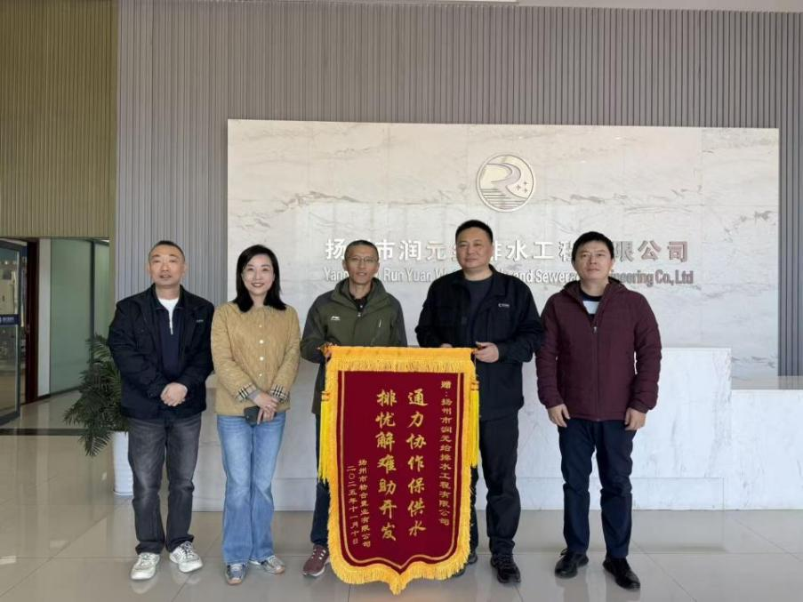 11月19日,揚州市物合置業有限公司將一面繡有“通力協作保供水,排憂解難助開發”的錦旗送到長江水務潤元公司工作人員手中,對潤元公司高效、優質、便捷、暖心的服務表示衷心感謝和認可。